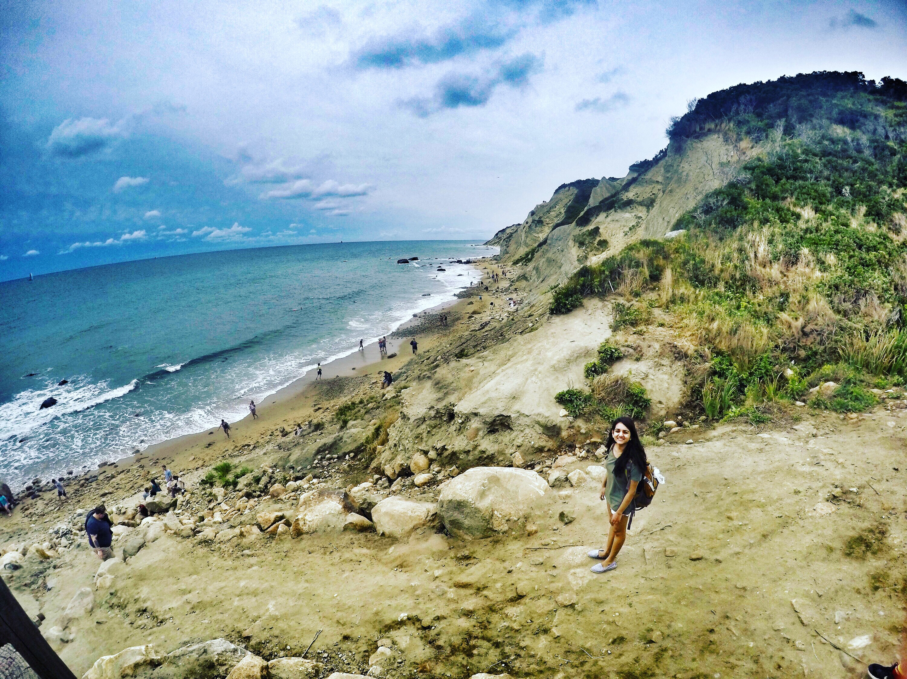 IT and I decided to tandem bike as she didn’t know how to bike – and after a few minutes of struggling REALLY HARD, we got the hang of it! I think we’re pro tandem bikers now – very proud of ourselves. The entire island is extremely bikeable, and you can wander around any inlet and stop by any of the marvelous beaches. Our first stop was Mohegan Bluffs, 140 steps down cliffs to a beautiful rocky beach. Here, we had our little picnic of cheese and wine (and we definitely needed it after a very hilly bike ride!).