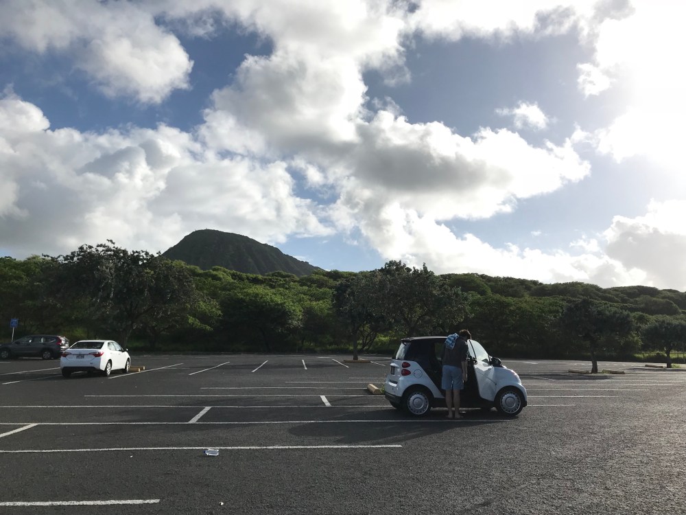 The most postcard-worthy beach in Oahu, with white sand beach + crystal blue waters. Parking is just on the sides of the roads. We almost rented kayaks to go out to the Mokes (the small islands you see in the photos), but then thought that sea kayaking wasn’t going to be that fun in heavy wind…so we just had some nice beach time here.