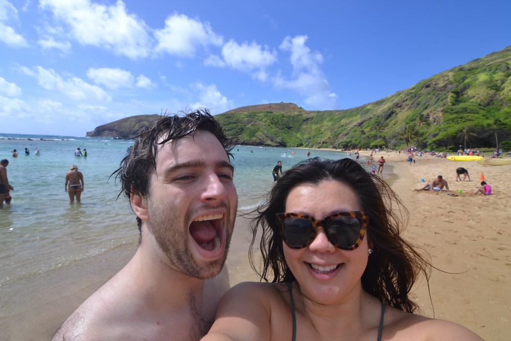 M wouldn’t let us do a real shark dive (next time!!) so we settled for Shark’s Cove 😛 There aren’t actually any sharks here (unless you swim out too far), but there was AMAZING snorkeling (without the touristy vibe of Hanauma Bay, especially since we visited early in the day when it was a bit drizzling). Be sure to bring water shoes, and this is probably only for very strong swimmers – both of us were competitive swimmers in our past lives, and we both got pulled out by rip currents. It was worth it to see cooler things farther from shore, but probably a scary experience for people who aren’t as confident in their swimming abilities.