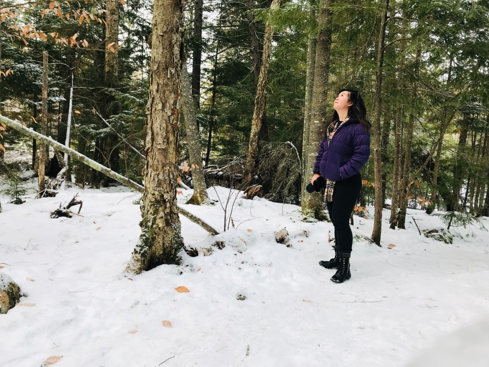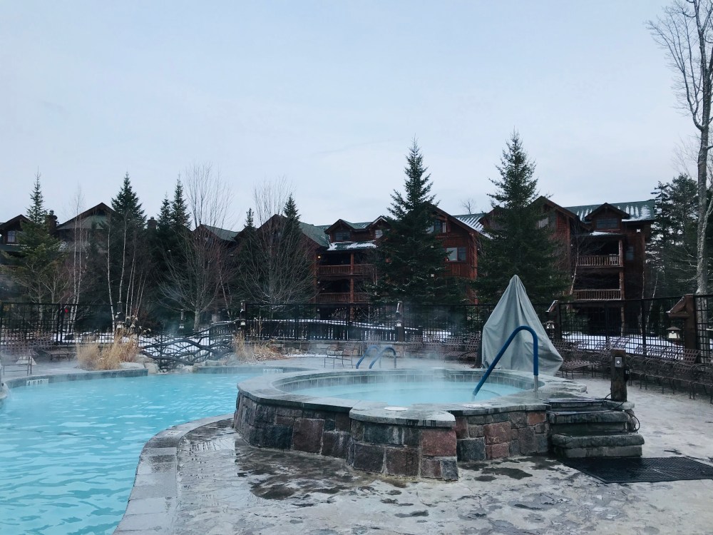 We were able to rent an affordable AirBnB cabin 15 minutes away from Whiteface Mountain, which is another 15 minutes to downtown Lake Placid area. The first day we spent skiing (learning to ski, for me and M). I did NOT enjoy myself, but was glad I could say I tried it at least. So the next day while the boys went skiing, I went exploring the region, going on a winter hike, visiting a wolf sanctuary, and then checking into a spa where the boys joined me for a glamorous outdoor pool/hot tub apres ski after their ski session. Whiteface Lodge is truly the most gorgeous hotel in the area, although it’s quite expensive to stay there!