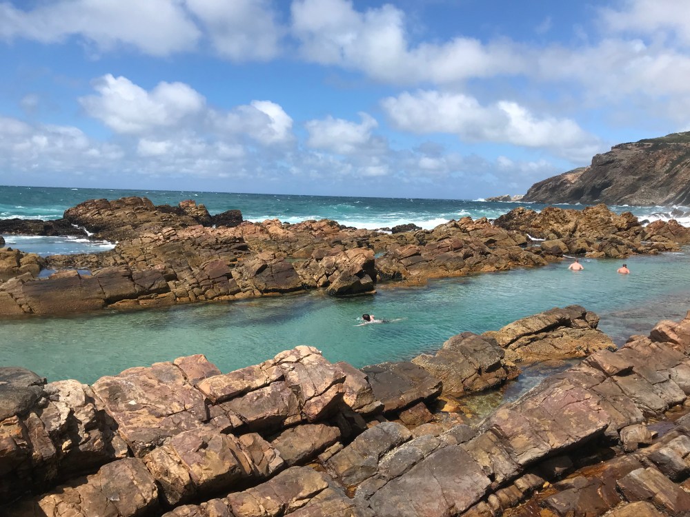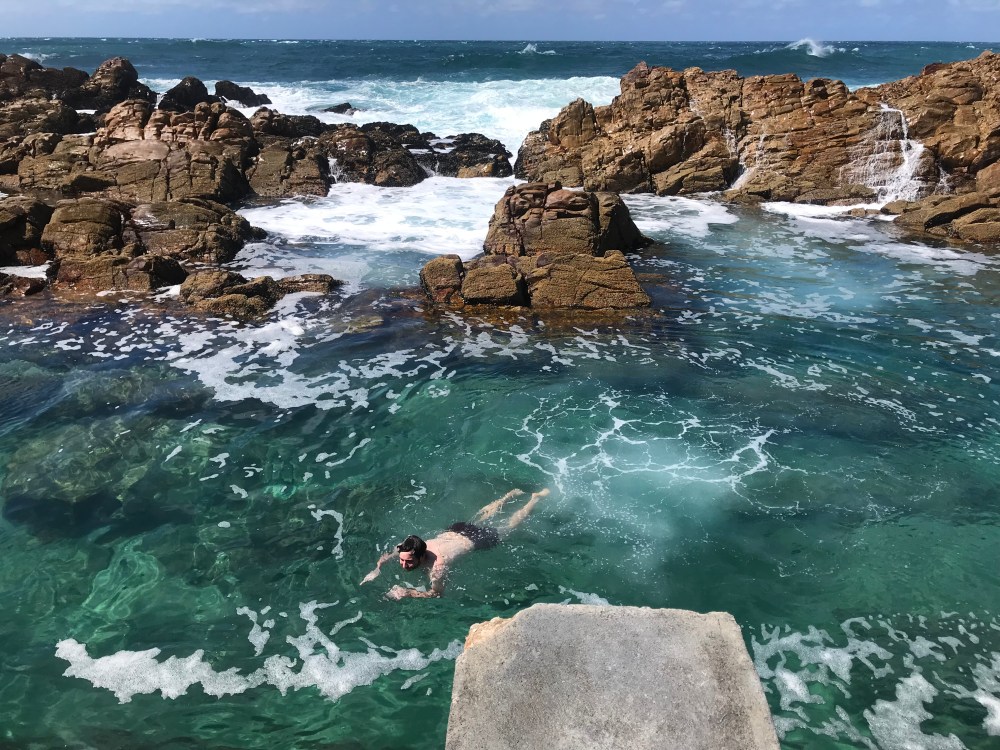 We stayed in an old train lodge in Mossel Bay, which was quite charming since it was right on the beach, and we woke up to a sunrise over the crashing waves. The lighthouse area in Mossel Bay was beautiful, and we did some great ocean swimming and a hike, complete with lots of dassis (“rock rabbits”).