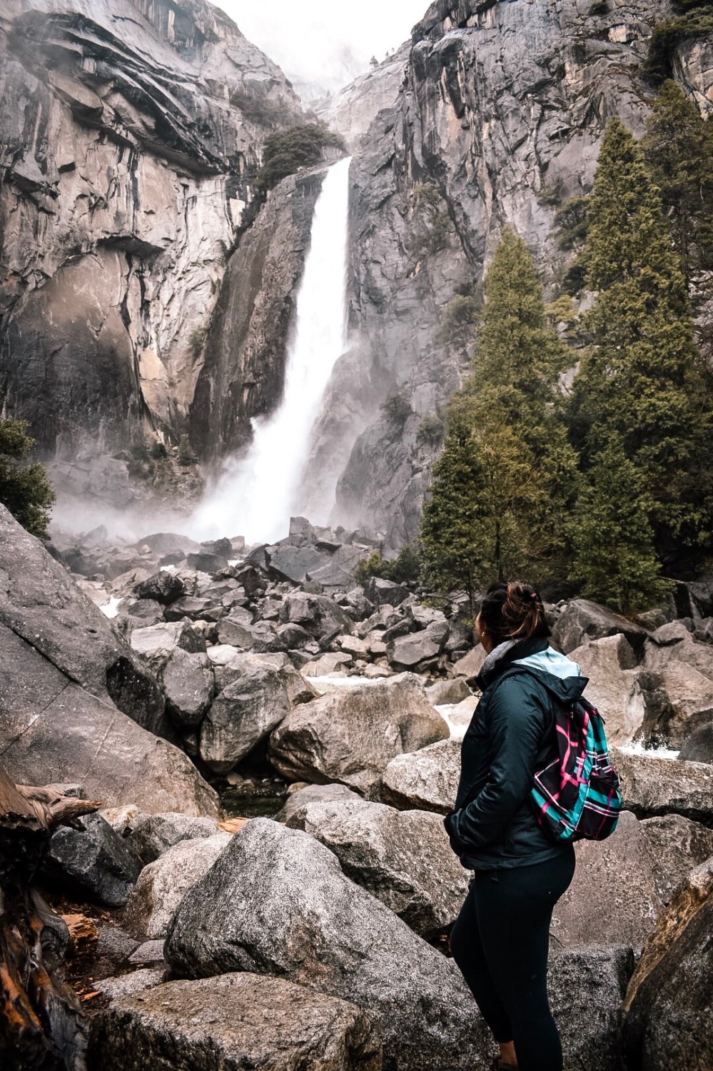 Because we were visiting in the off-season, some of the hikes we’d wanted to do were closed because of snow or avalanches. Glacial Point is only open May-October, Half Dome hike as well, and while we were hiking the Mist Trial, the last 0.3 miles up to the best part of the waterfall was shut off for a recent avalanche. We still enjoyed our time wandering around Yosemite Valley – every turn was a new view, and the weather varied drastically enough to warrant a different experience each day.