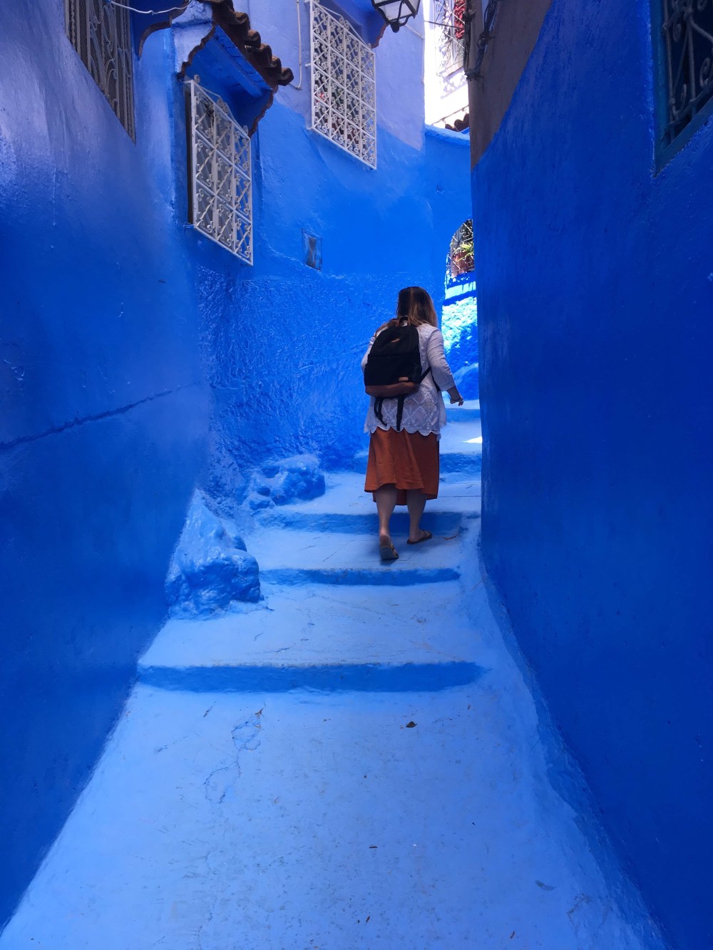 Chefchaouen was a beautiful blue city, which apparently is blue because the Jewish were the last to settle there and made it so. We felt that walking around was much safer than in Fes, and the vendors were not quite as aggressive. We simply enjoyed walking around and taking photos of the beautiful corners and colorful pots.