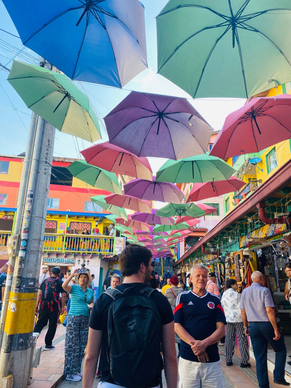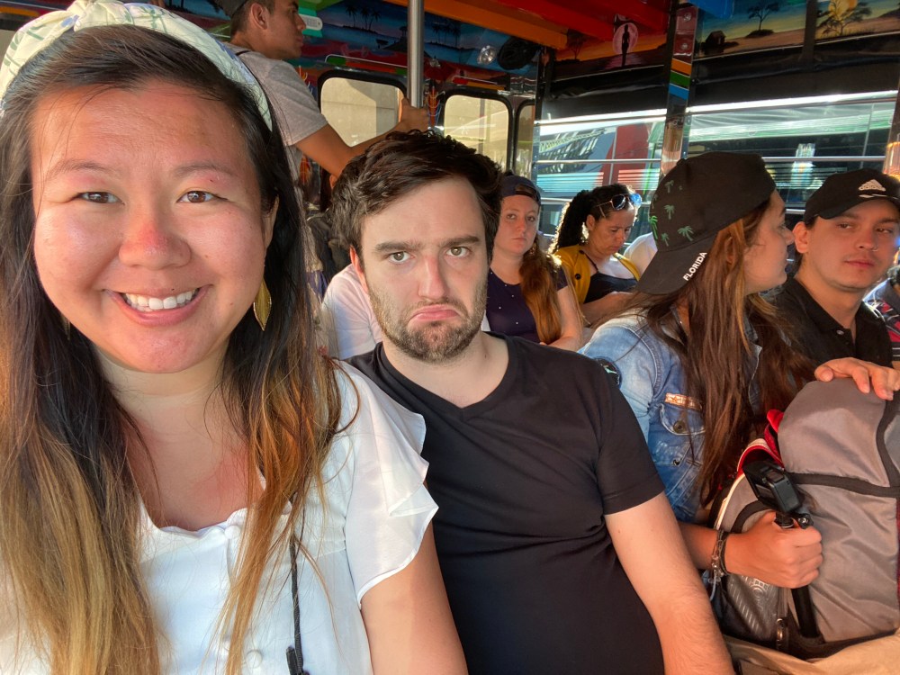 From there, we took a tuk-tuk into the main town of Guatape, and had a nice time wandering the town and enjoying the street food. You can’t buy a roundtrip ticket in the morning, so we had to wait in line for a ticket back to Medellin. The only ticket left was an open-air truck/bus! While it wasn’t too uncomfortable, we were pretty cold driving through the mountains with the wind whipping through us – so bring a windbreaker in case you can’t get a normal bus back to Medellin at night!