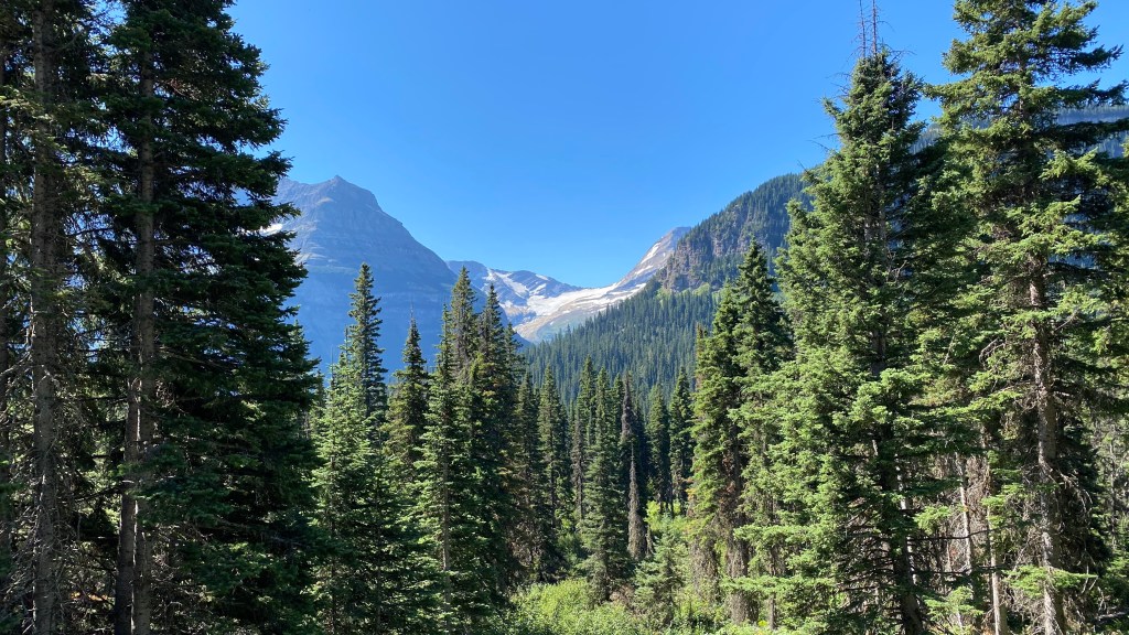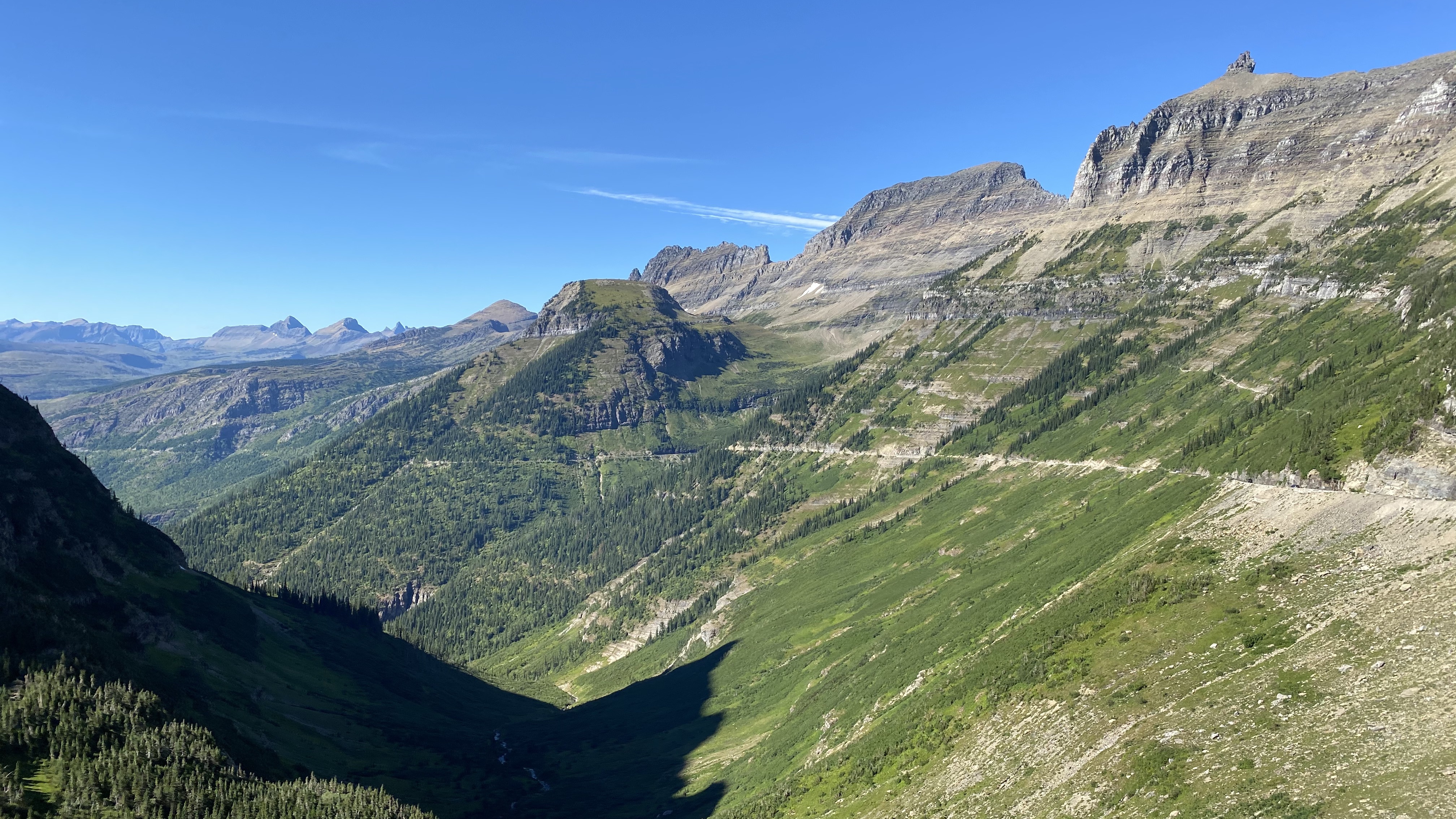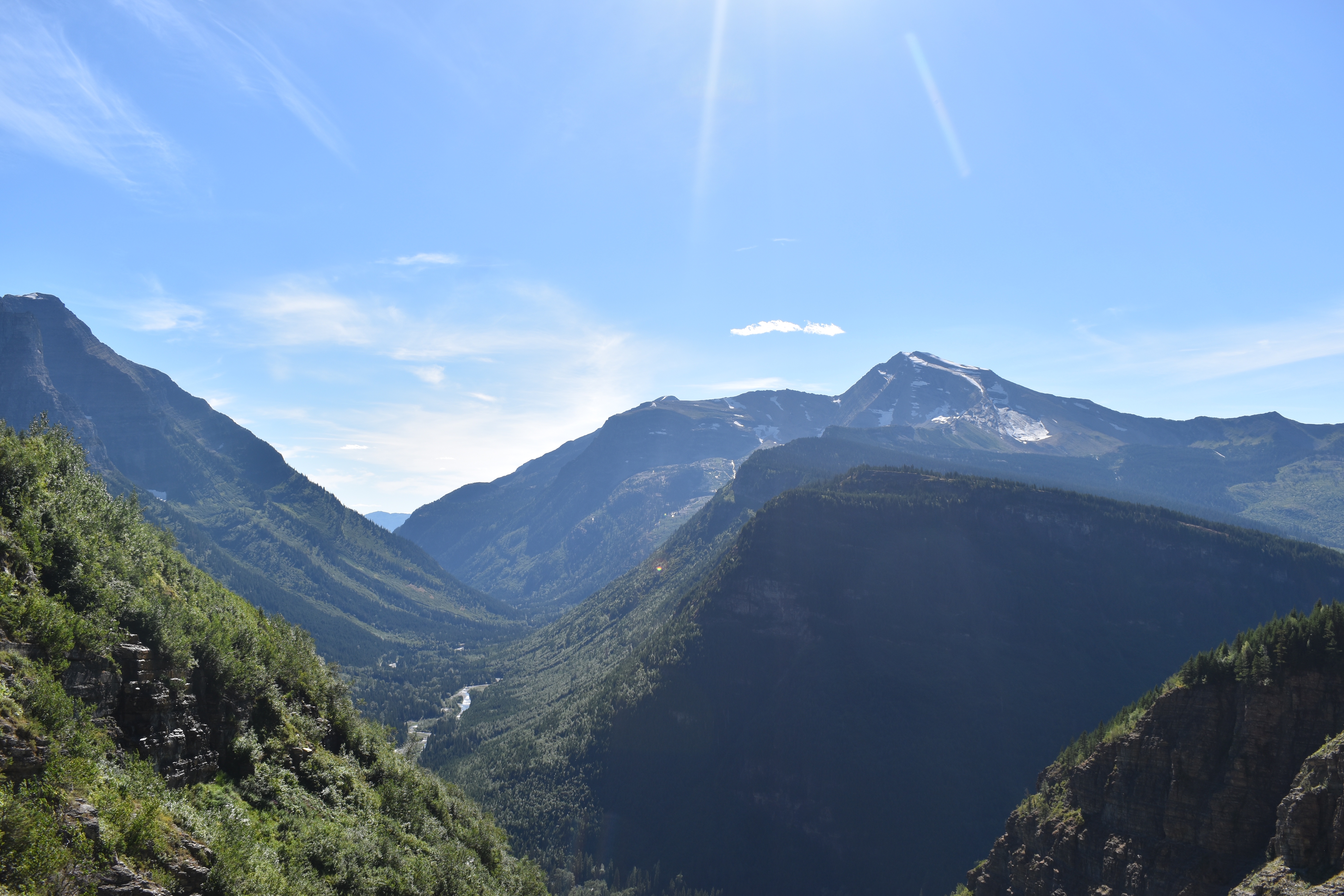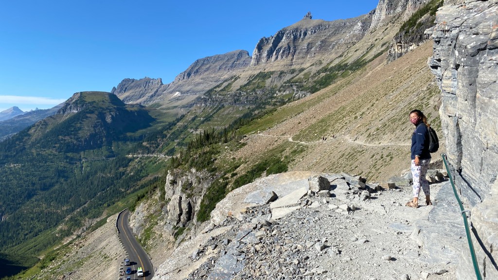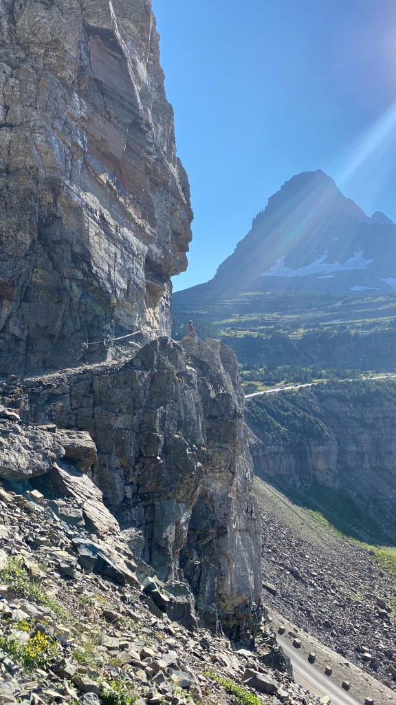So many pretty overlooks on this road – stop by them all! Just note that it gets chilly in the morning/evening here regardless of how hot it gets during the day, since Glacier is at high elevation. It takes around 2 hours to drive end-to-end through the park on the road.