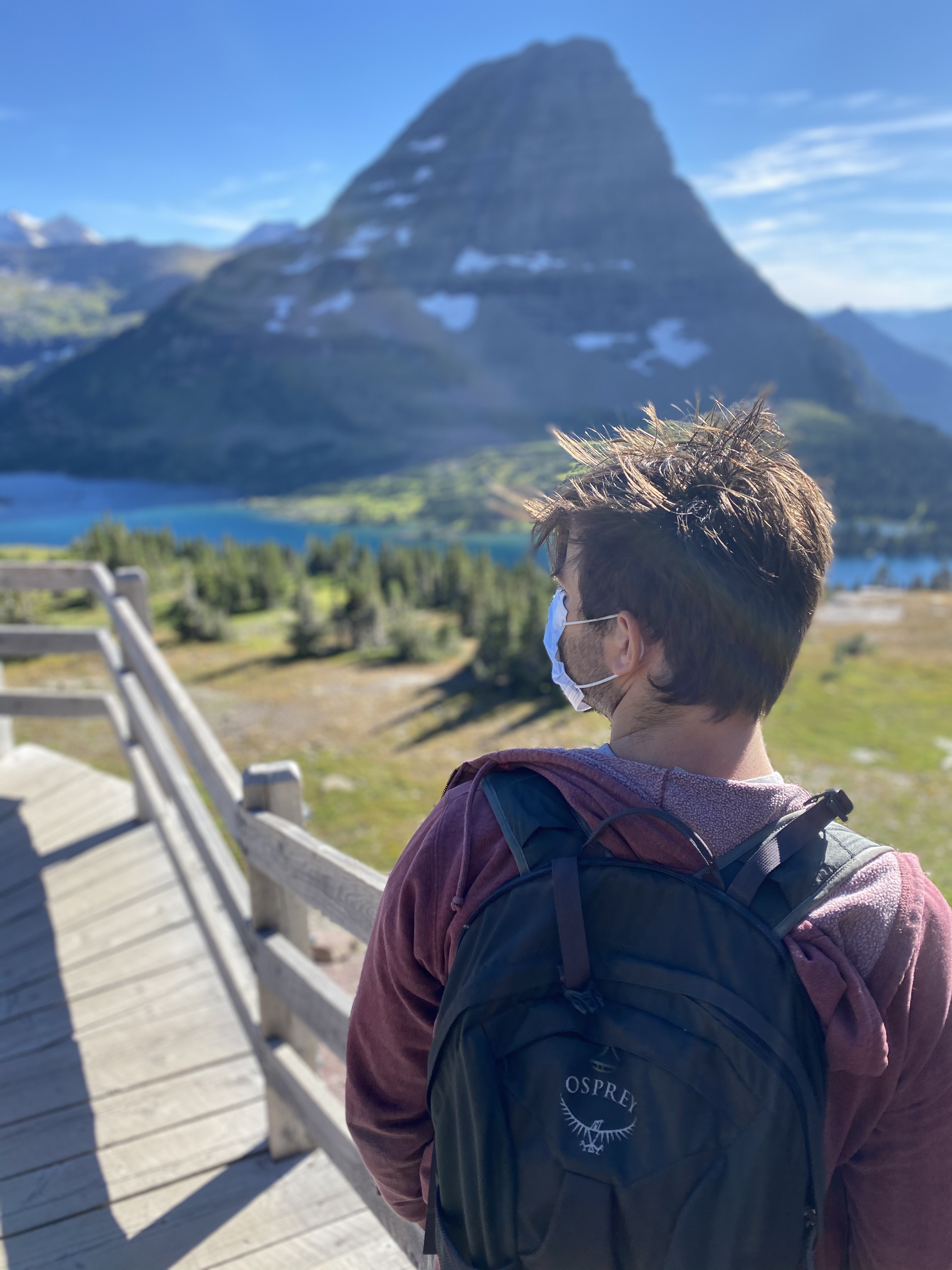 Almost one month ago, after I finished my summer internship, we embarked on a two-week roadtrip through some national parks that we’d been meaning to visit but never quite got the chance to, because with that kind of time off we’d be flying to Europe or Asia. Since domestic trips are really the only ones feasible because of COVID, we decided to visit Glacier, Yellowstone, and Grand Tetons (I’d hoped to add on some Utah national parks as well, but we decided to save those for another time). We ordered the America the Beautiful Pass, which is valid for one year and pays for itself if you visit more than 2 national parks in a year. I’d originally thought about getting a camper van and just living in the van for the full 2 weeks, but they were pretty much sold out by the time we booked, so we got a normal van to drive around (Enterprise does 1-way rentals with no drop-off fee) and stayed in little cabins or campsites along the way.