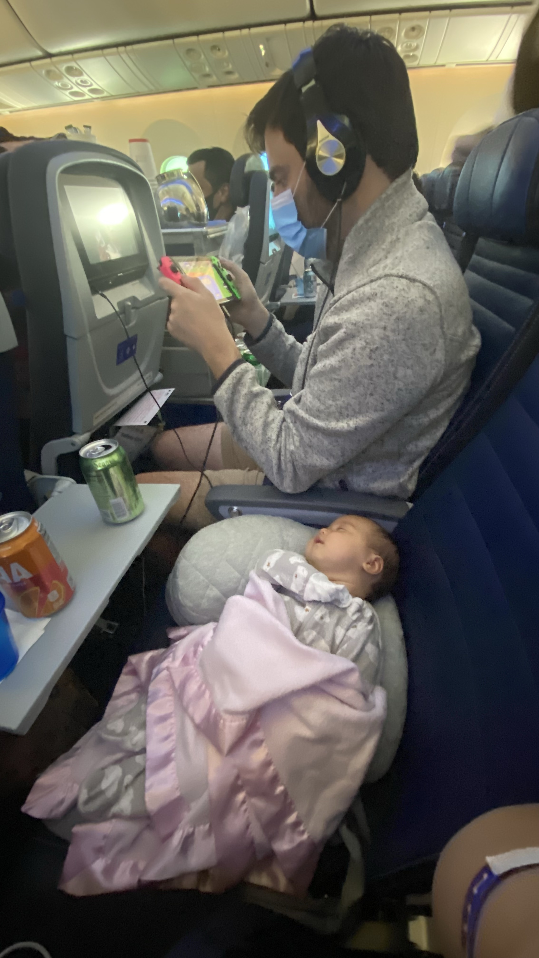 We booked this trip when S was around 1 month. We wanted to see how she was behaviorally – we figured out pretty quickly that we were very lucky and she has been a comparatively easy baby. She doesn’t cry for hours on end for no reason – and at this age, she generally likes being held, eating, and sleeping. I wasn’t too worried about the plane ride since I suspected she would just sleep the whole time, and I was right: the white noise from the plane knocked her out and she slept the entire ride. She didn’t even wake up upon takeoff or landing to nurse (even though I was fully prepared to!).