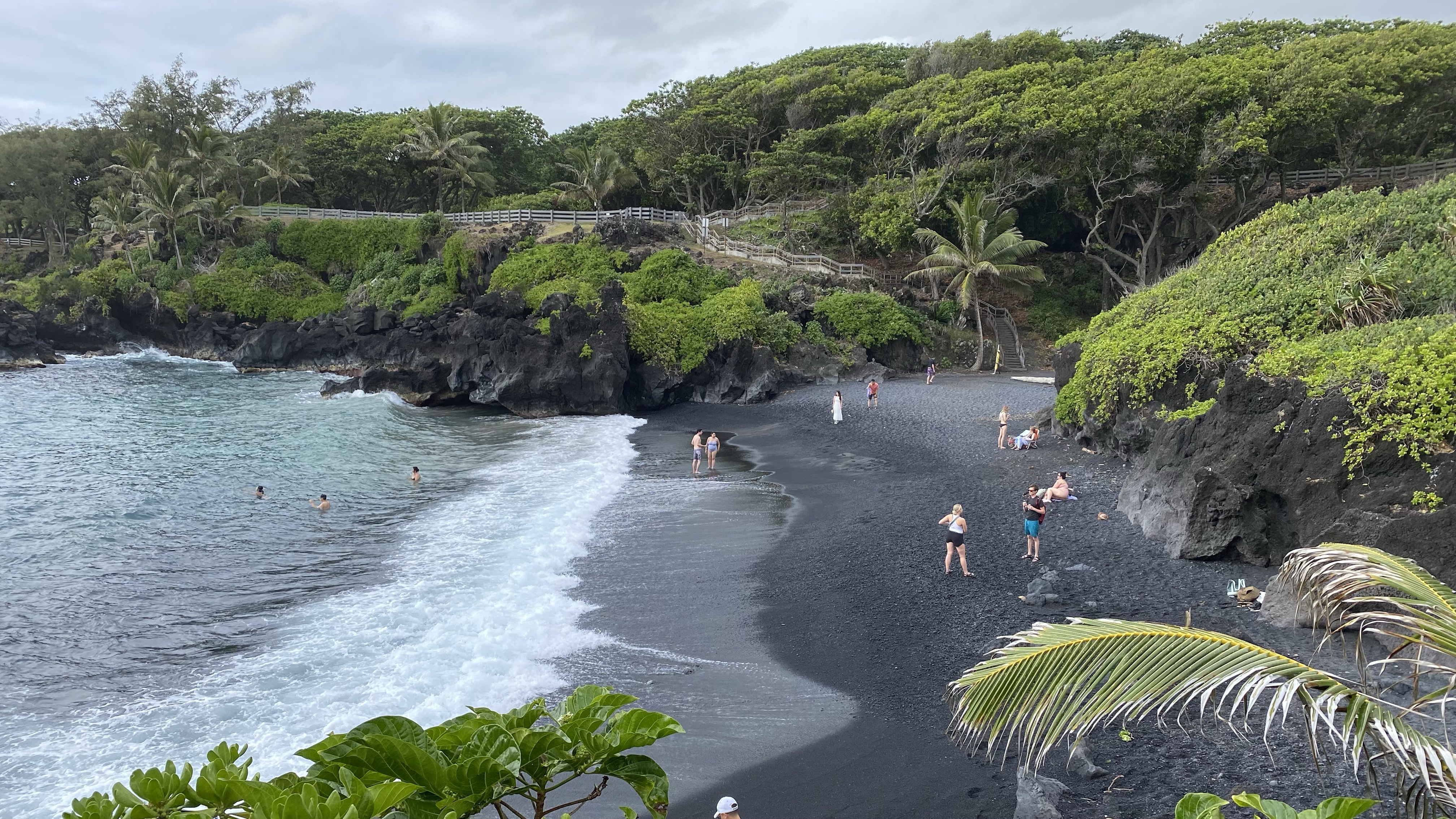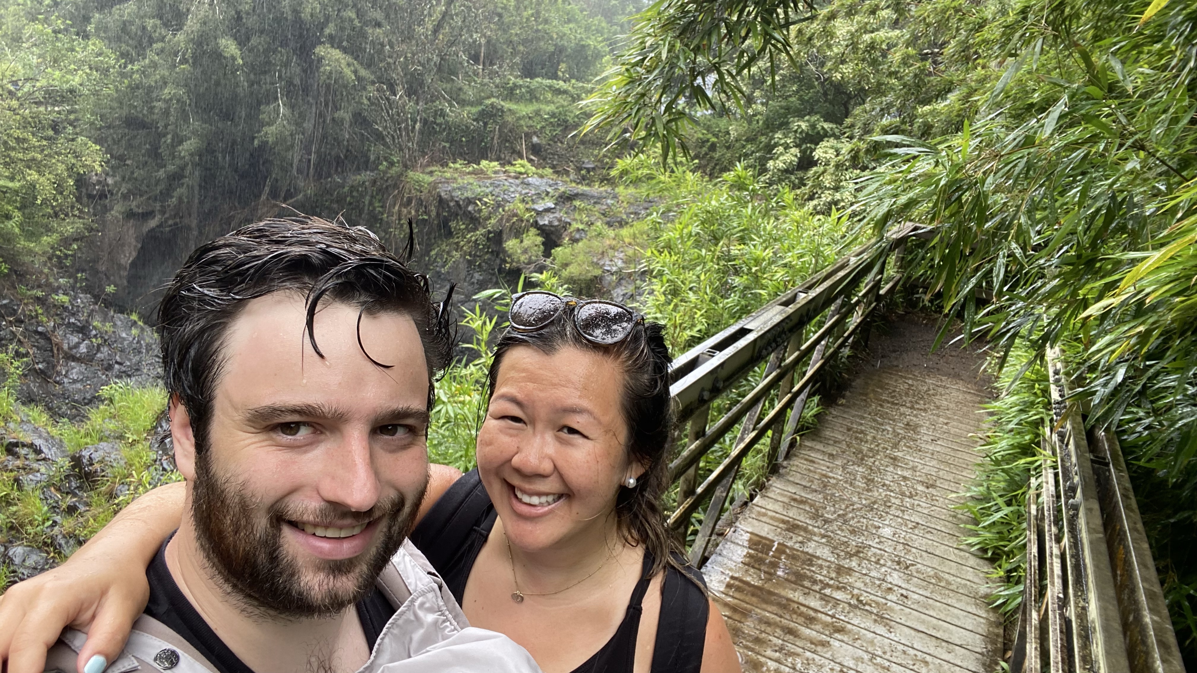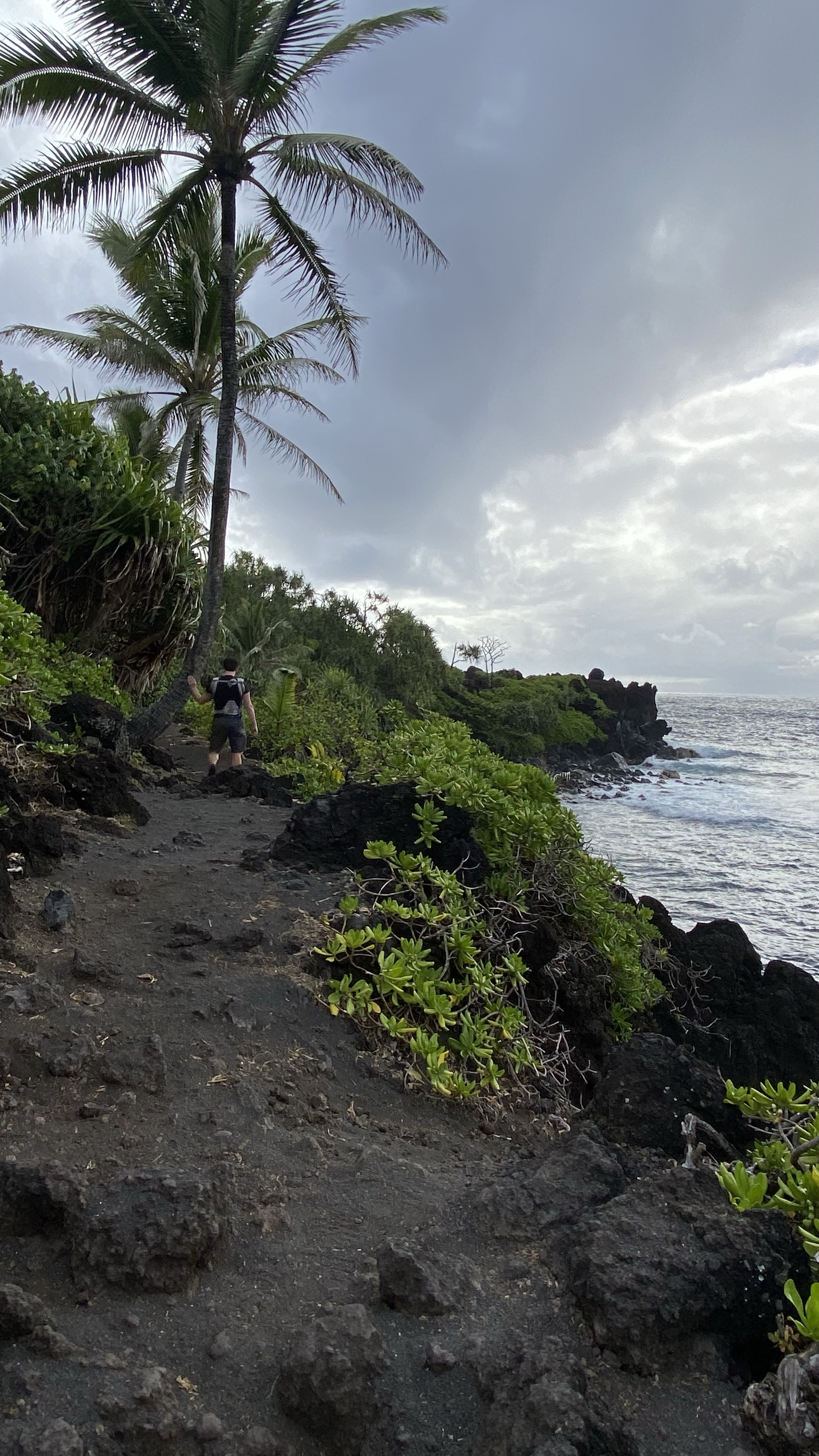 Our favorite stops on the road were the PipiwaiTrail (which we did with S in the pouring rain), and the Black Sand Beach hike.
