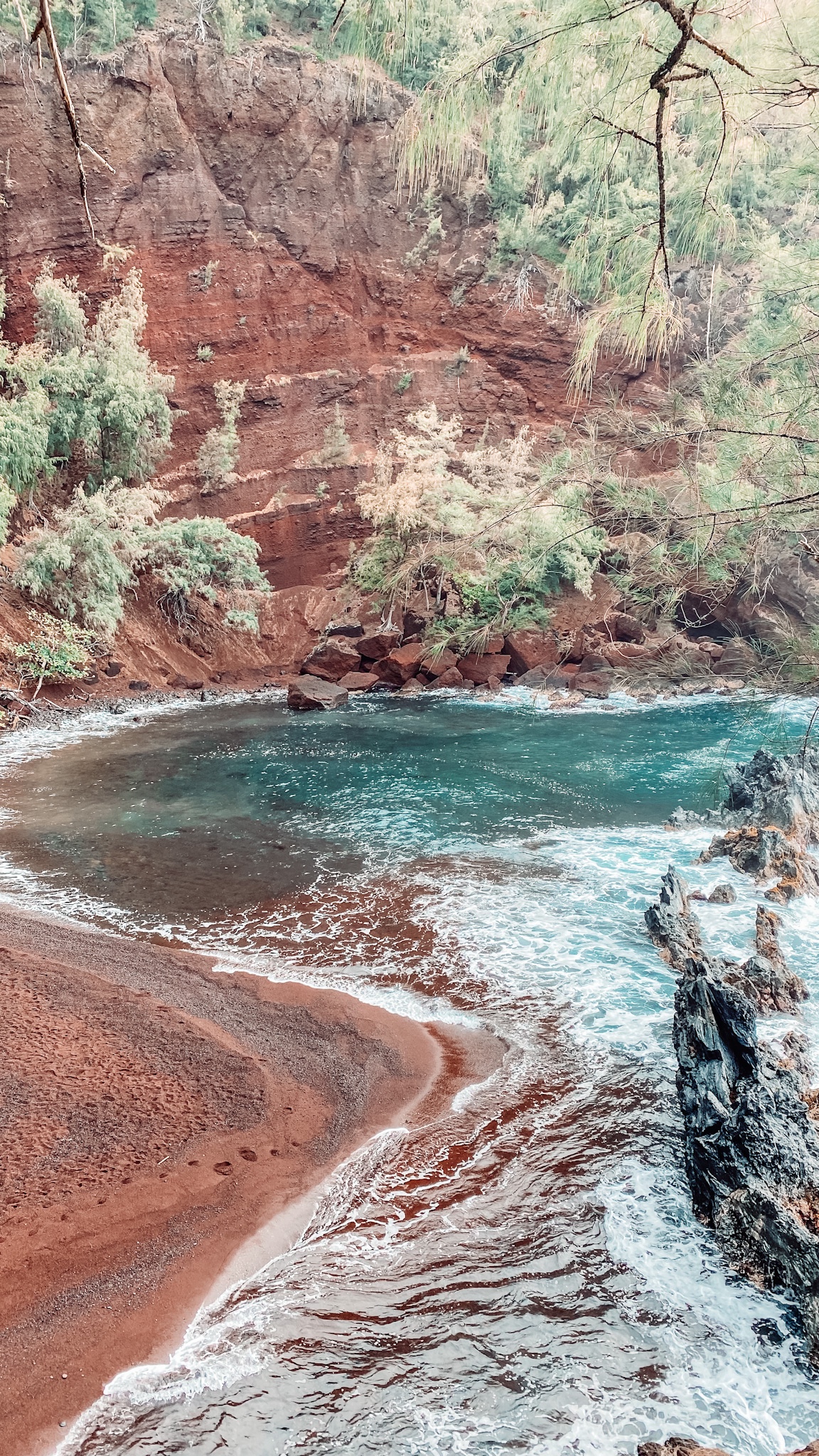 Usually people do the road to hana in a day, but we wanted to stay in Hana for at least a night since we thought it would be too much to do with a baby. I am so glad we did, because the Hana-Maui resort was one of the best resorts I’ve ever stayed at. I wasn’t that excited to stay based on the photos, but basically you get your own little cabin (but beautifully appointed) with a deck, cliffside next to the ocean, and the entire resort is super peaceful. The path to the famous Red Sand beach was also right on the resort.