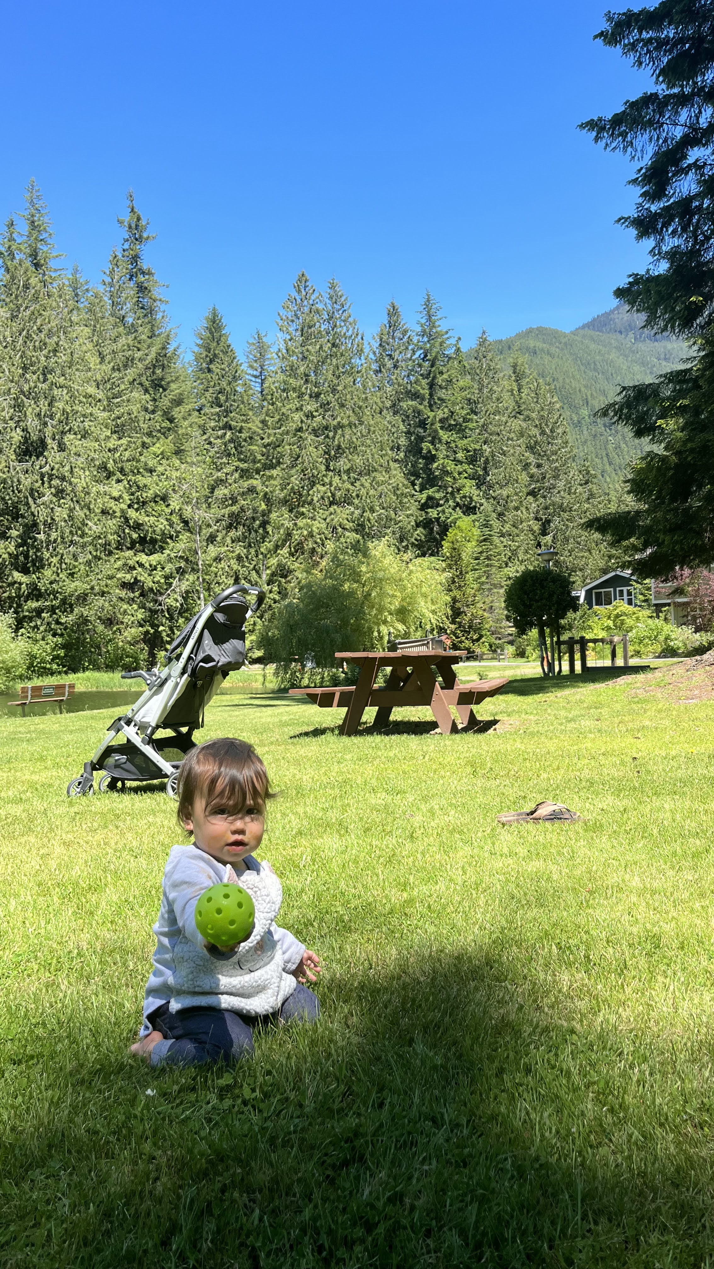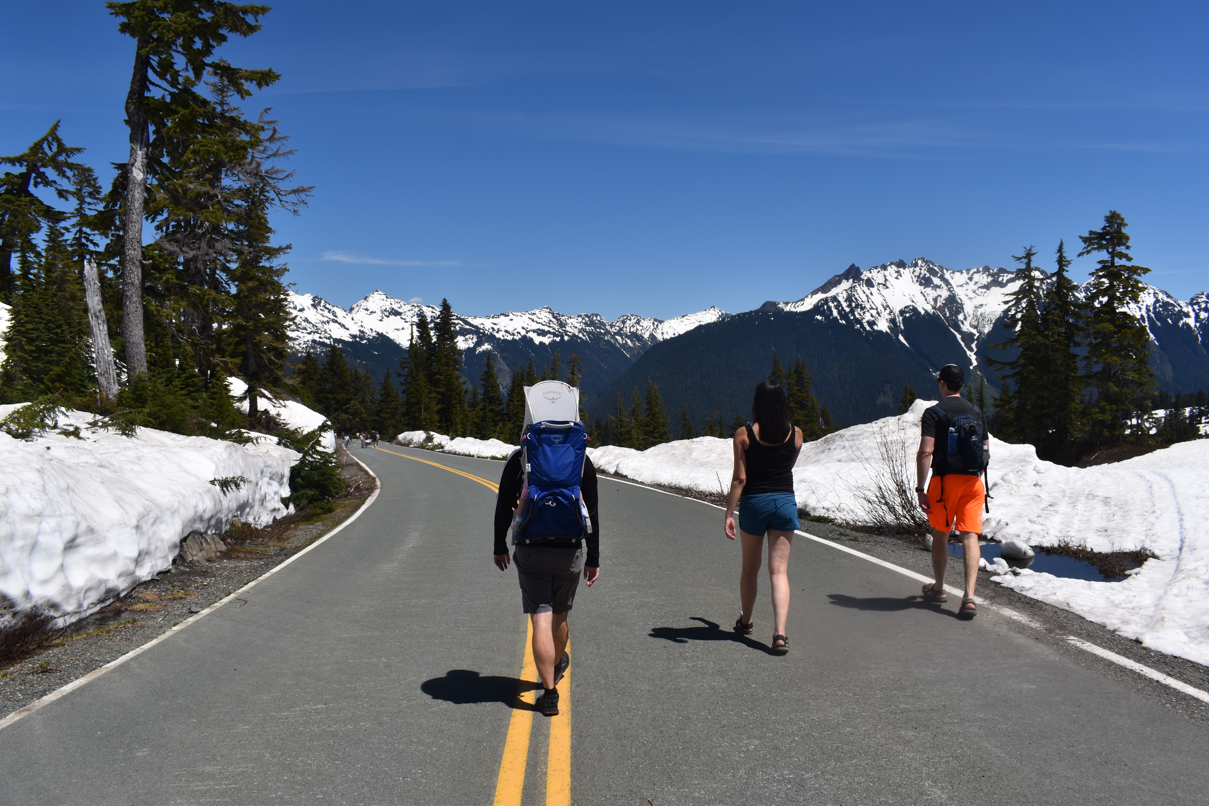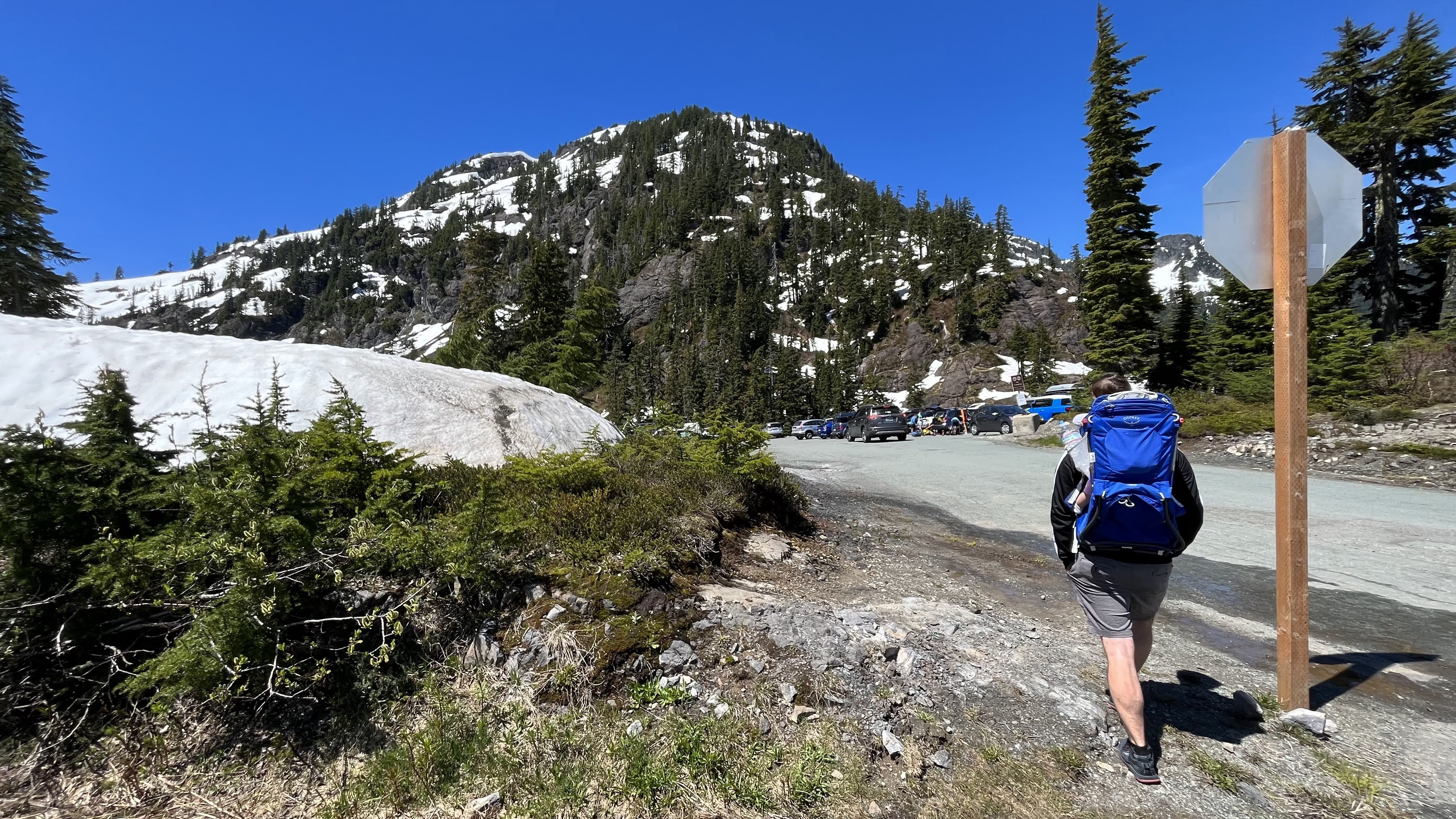 I was dumb and didn’t realize that the North Cascades would still be completely snowed in by end of June. Apparently August is a much better time to visit. Oops! So we mostly did local walks and chilled with our friends in our cute treehouse cabin. North Cascades is apparently the most remote / least-visited national park in the US, and it definitely showed via the sparse lodging options. We stayed in Mt. Baker, which would’ve been a 1.5-2 hour drive to the heart of the North Cascades (Diablo Lake etc). We didn’t want to do that as a day trip with S, so we stayed around the Artist Ridge and Nooksak River area instead. Artist Ridge was actually also still snowed in, so we only got as far as Picture Lake…it was cool seeing 15 ft of snow in the middle of summer, anyway!
