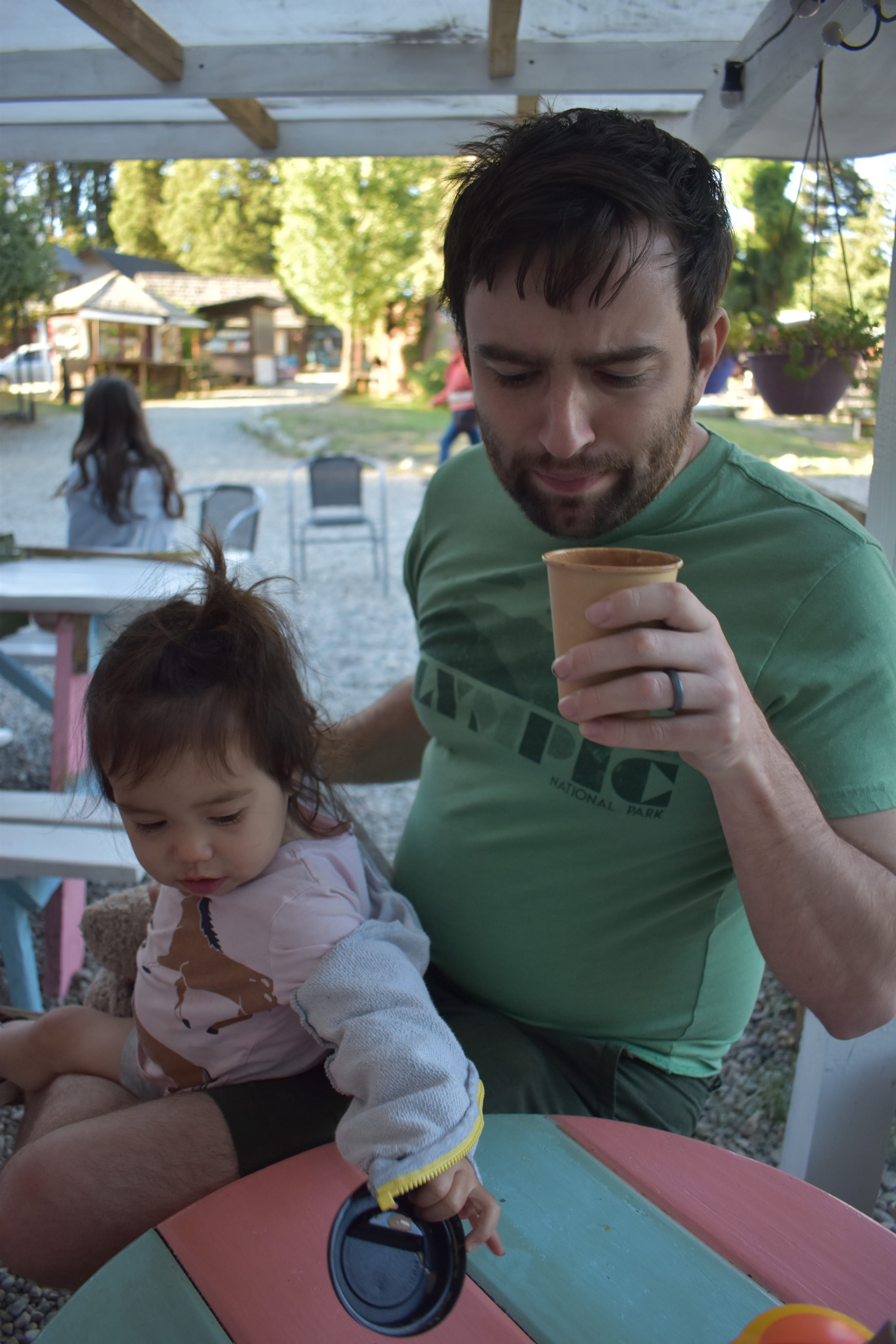 We took the chairlift up Cerro Campanario one day; the ski lift apparently takes you to a better location on the mountain, but we didn’t want to risk and open-air ski lift while S was still a squirmy toddler. Otherwise, every afternoon we drove around to a different part of the area to do some toddler-friendly hikes to some beautiful lakes where S really loved throwing rocks!