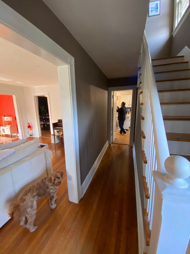 After – we built a tiny powder room where the hallway used to be, and opened up the walls to add more room on the first floor