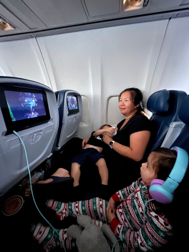 - Flyaway bed (optional. We brought but didn’t use for our CA flight given the flight time, but will use for overnight / redeye flights to Europe in the future. It’s super small and folds out easily, and is FAA approved on multiple airlines).