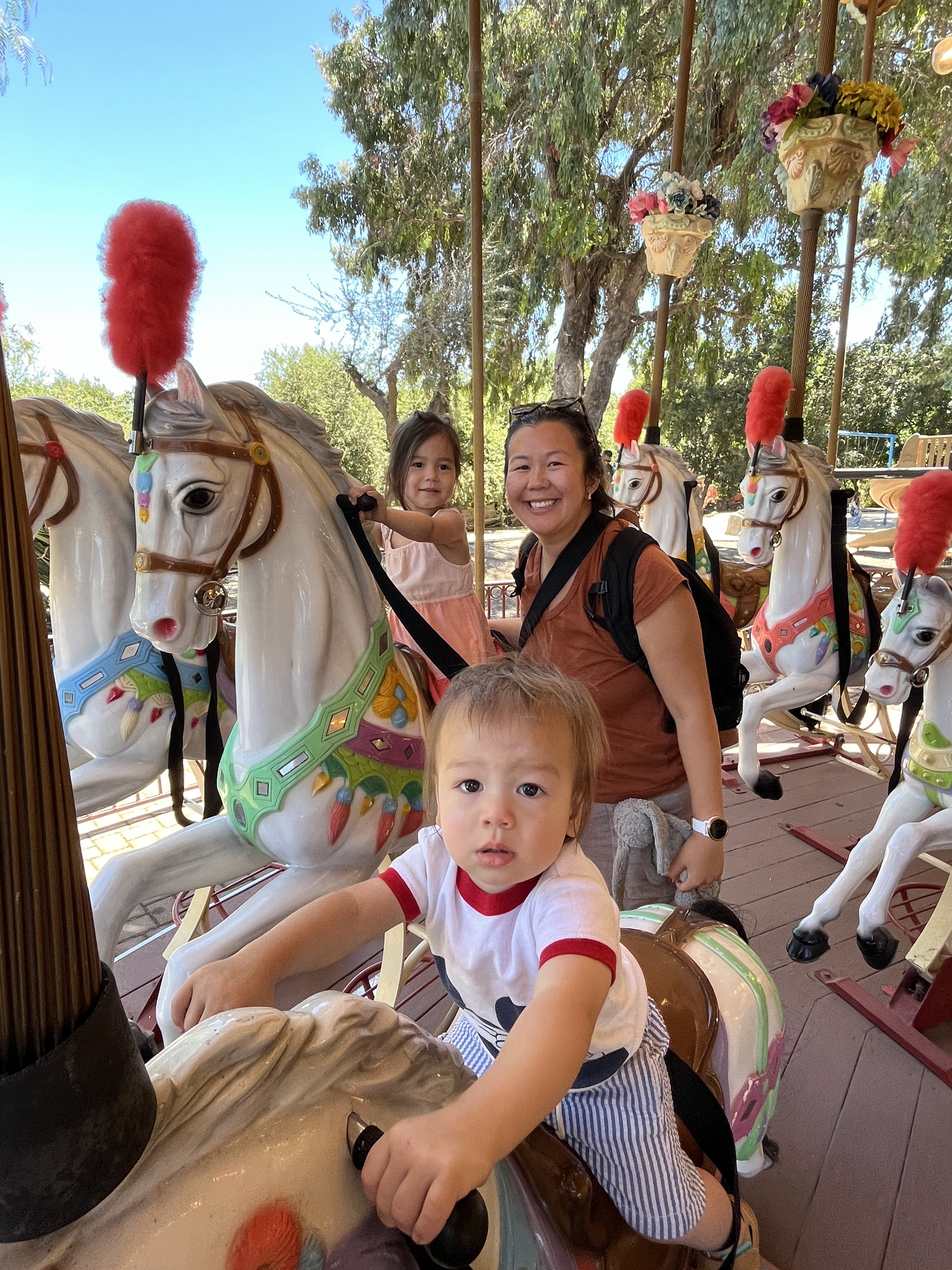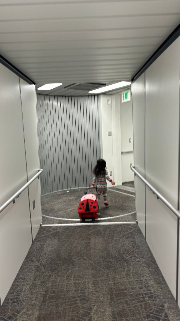 Traveling minimally is no longer possible, but we were able to streamline as much as we could. The flight to the west coast was a little challenging and the kids were melting down by the time we landed, but the flight back was pretty easier (it was shorter and we also flew during daytime). M and I switched off T every 30 minutes since he was more difficult to entertain, and S mostly entertained herself with movies and occasional drawing.