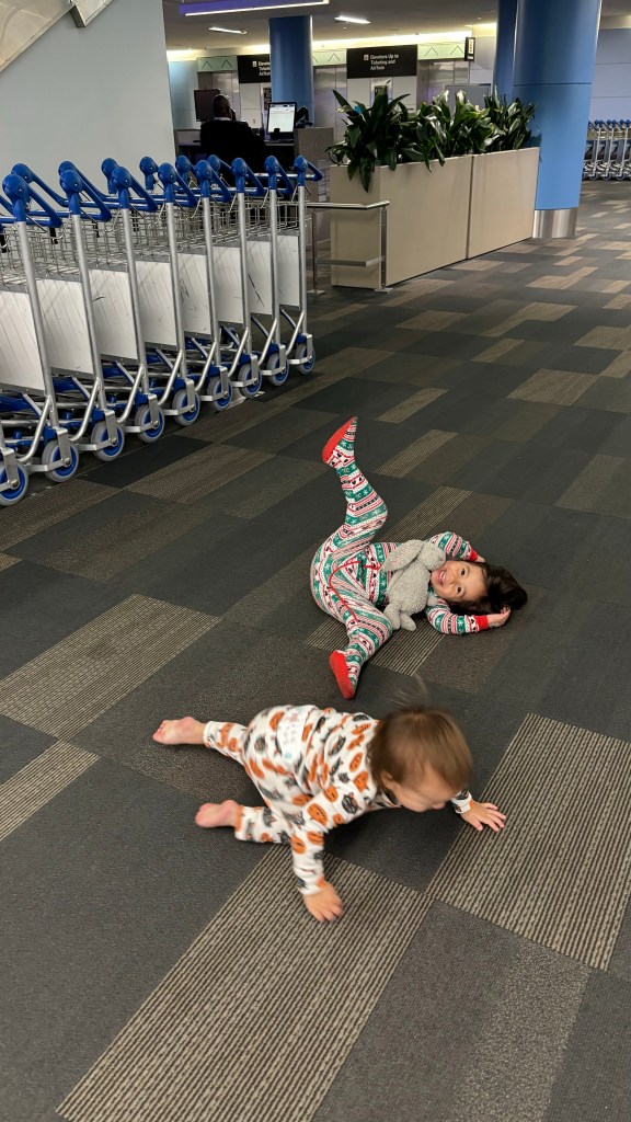 Kids did great for ~5 hours on the flight and then started melting down around hour 6…then we had to gather all our luggage, get the rental car, and drive 1.5 hours to our hotel. They did great! Makes me think we can handle another large trip with just the two of them sometime soon. Or maybe I should stay a sane person and just stay put.