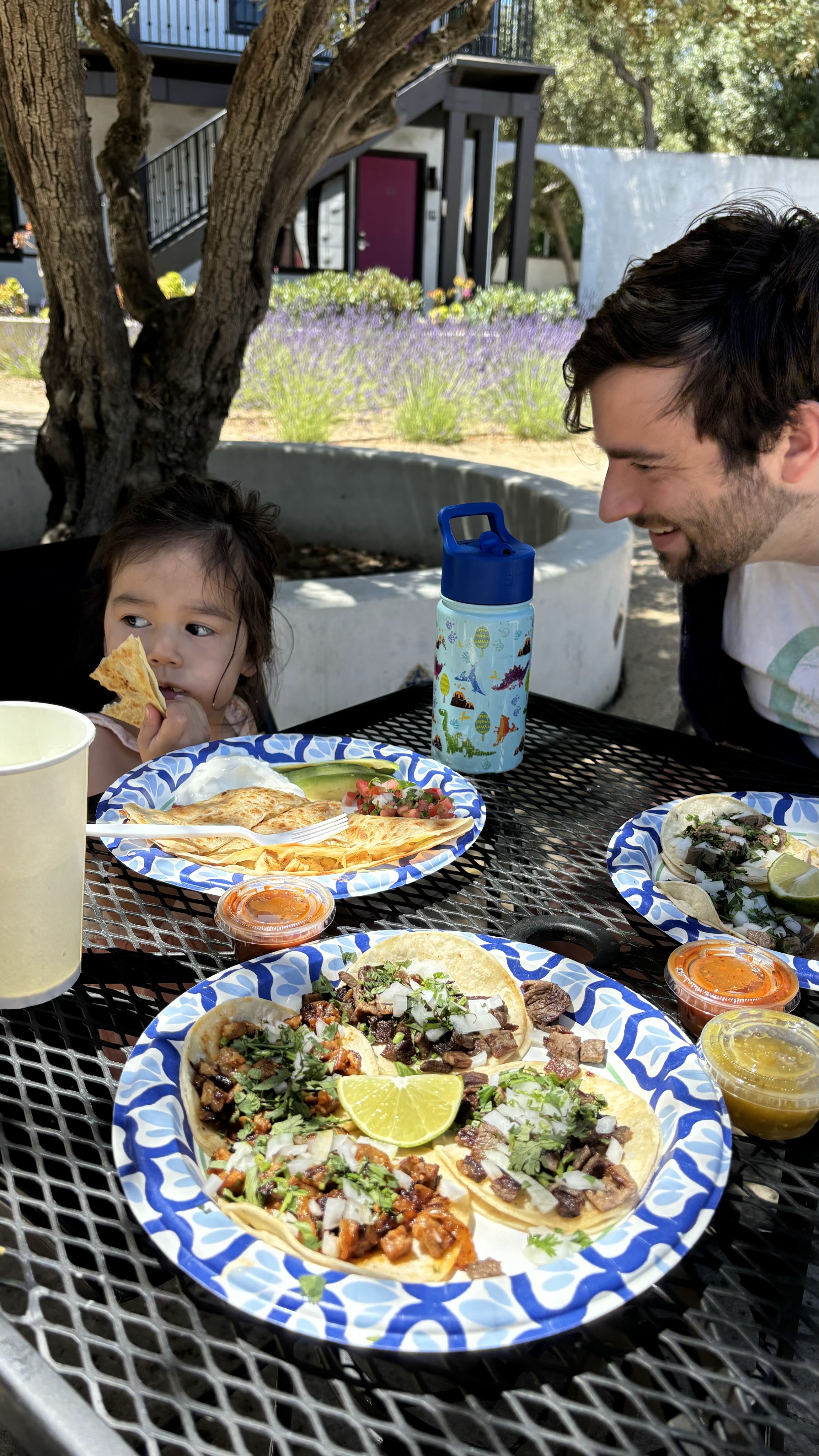In Hollister, we thought we had booked a suite so that we could have 2 separate rooms – but turns out the suite was just a bigger normal hotel room. So we spent 3 nights all together in one room. It honestly went pretty well, since we had a crib for T and also brought his slumberpod (our favorite travel + baby item) + white noise machine. S has transitioned to a real bed at home, so we just got a room with 2 queens. She took a bit longer to fall asleep and we couldn’t really talk / watch TV / do anything after 7 PM, but she eventually did fall asleep and actually really enjoyed sleeping near us since she’s been going through a bit of separation anxiety at bedtime anyway.