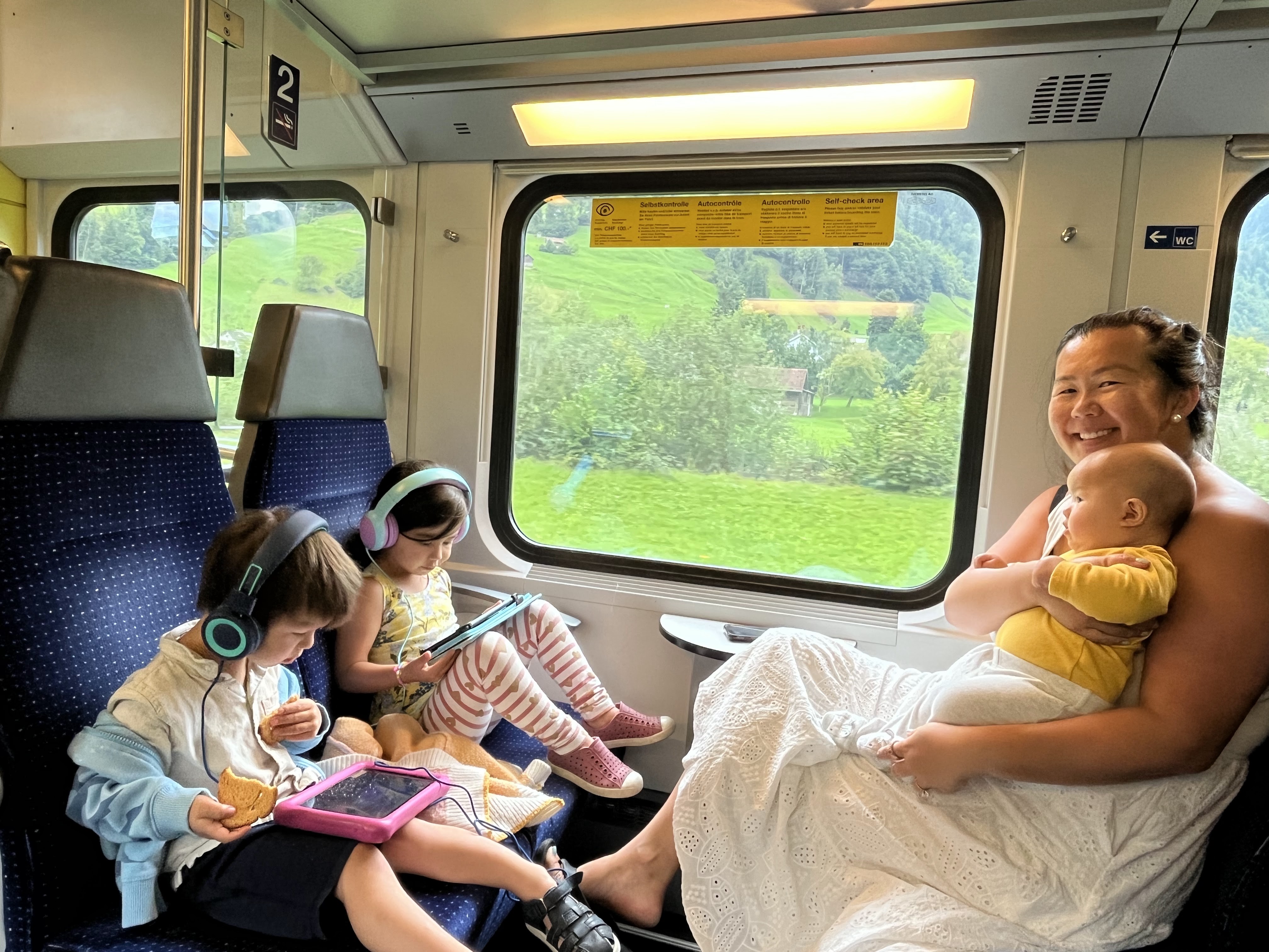 Planes, trains, funiculars, cable cars…everything except automobiles! Trains added more time only because we had connections instead of driving straight through the Alps, but honestly it was a great call to utilize public transport for a much more relaxed holiday. The Swiss train system and app are so great, everything was straightforward. And it was nice to have more room for the kids to roam. Kids did a great job on the plane – C was the easiest, as a blob baby. S was pretty good during our daytime flight back and watched movies for 8 hours straight. T made a valiant effort and only had 1 meltdown on the way back, and 1 after the redeye while waiting for customs. Overall he is exiting the “difficult to travel with” stage. It especially helps that we rarely do screen time at home so when they are given the iPads when traveling, it’s the BEST thing in the world and turns them into little quiet zombies.