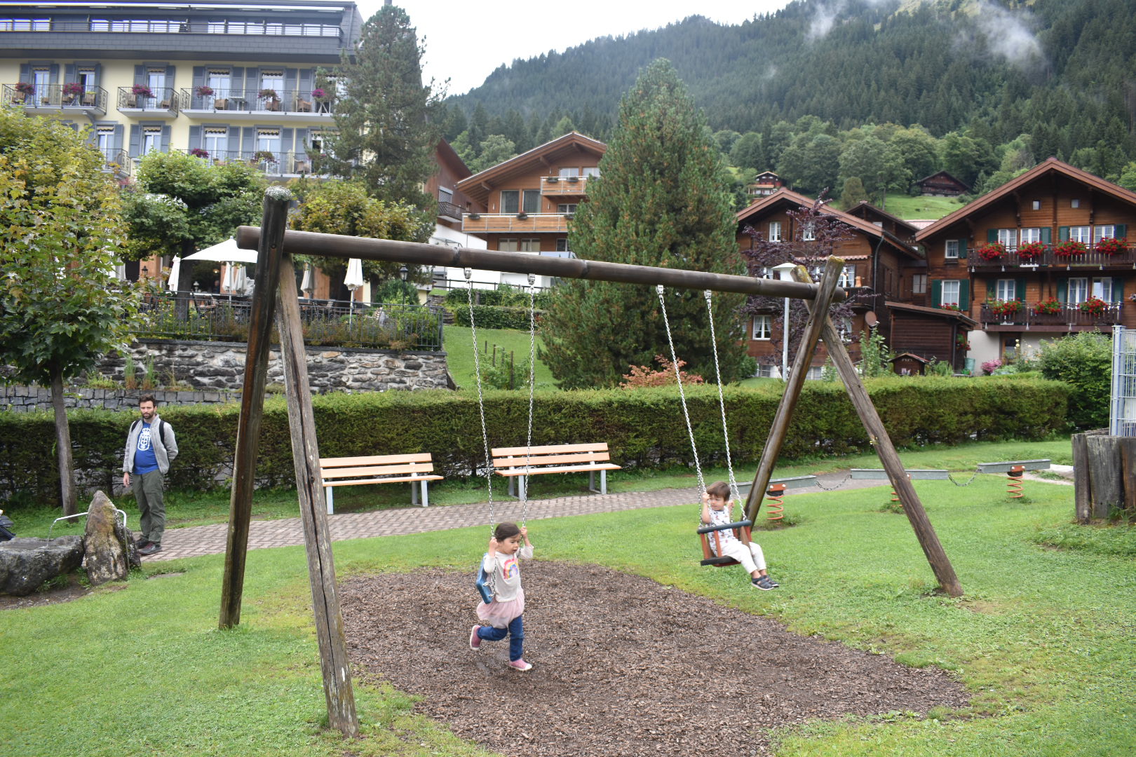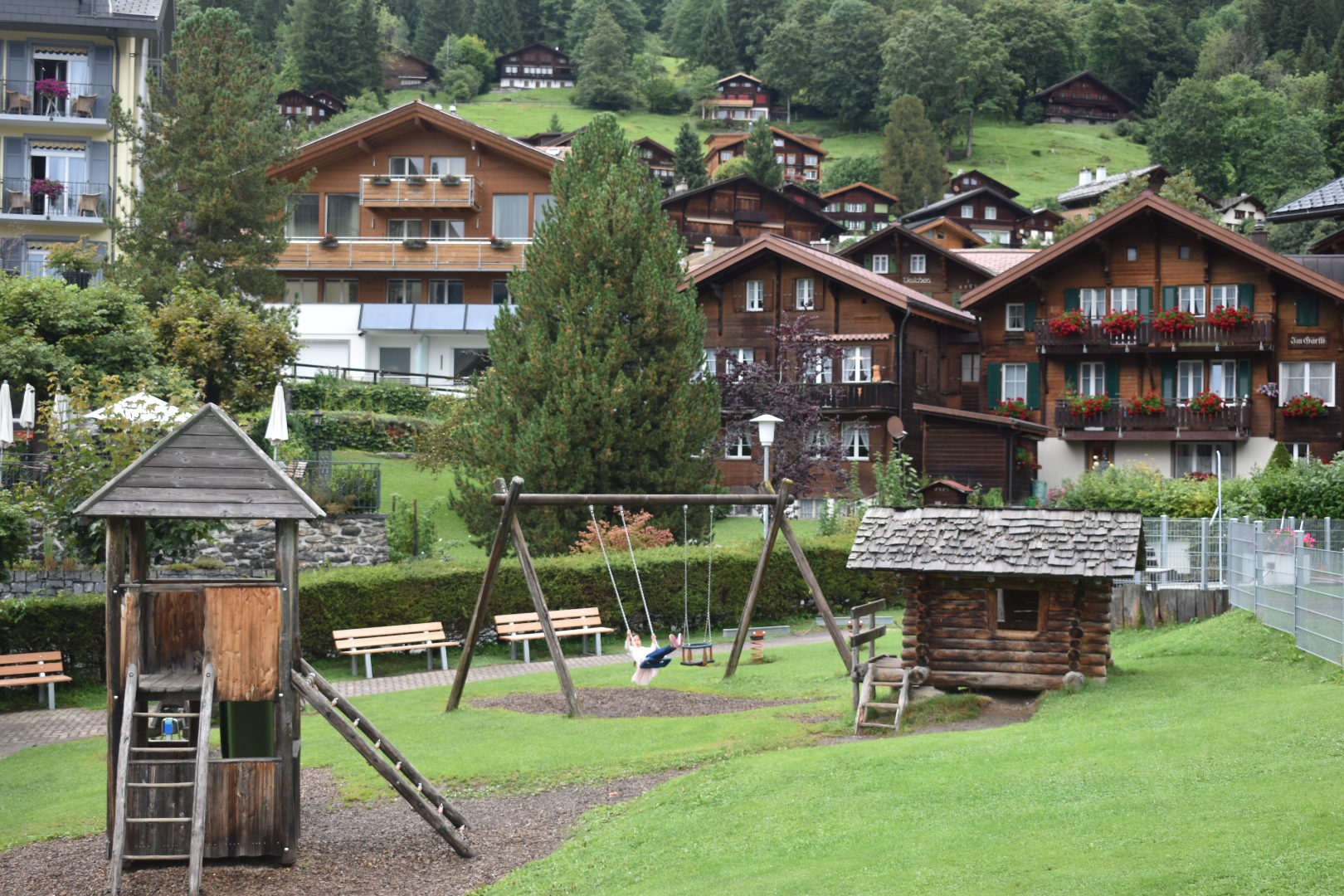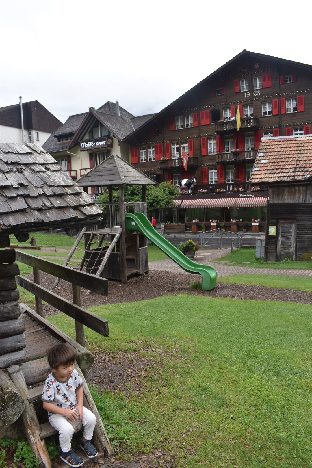 This was the last part of our Lauterbrunnen leg of the trip, before heading over to Braunwald for our first kinderhotel experience! We had hoped to spend an afternoon in Wengen with our friends after Mannlichen, but ran out of time because of the aforementioned “easy” “kid-friendly” hike. So we went back the day after and spent the majority of the day exploring Wengen and the cute little ball runs around town. The train from Lauterbrunnen to Wengen is super scenic as well, with some of the best views of the valley. You can see the train coming into Lauterbrunnen and the kids were always so excited to go onto the train!
