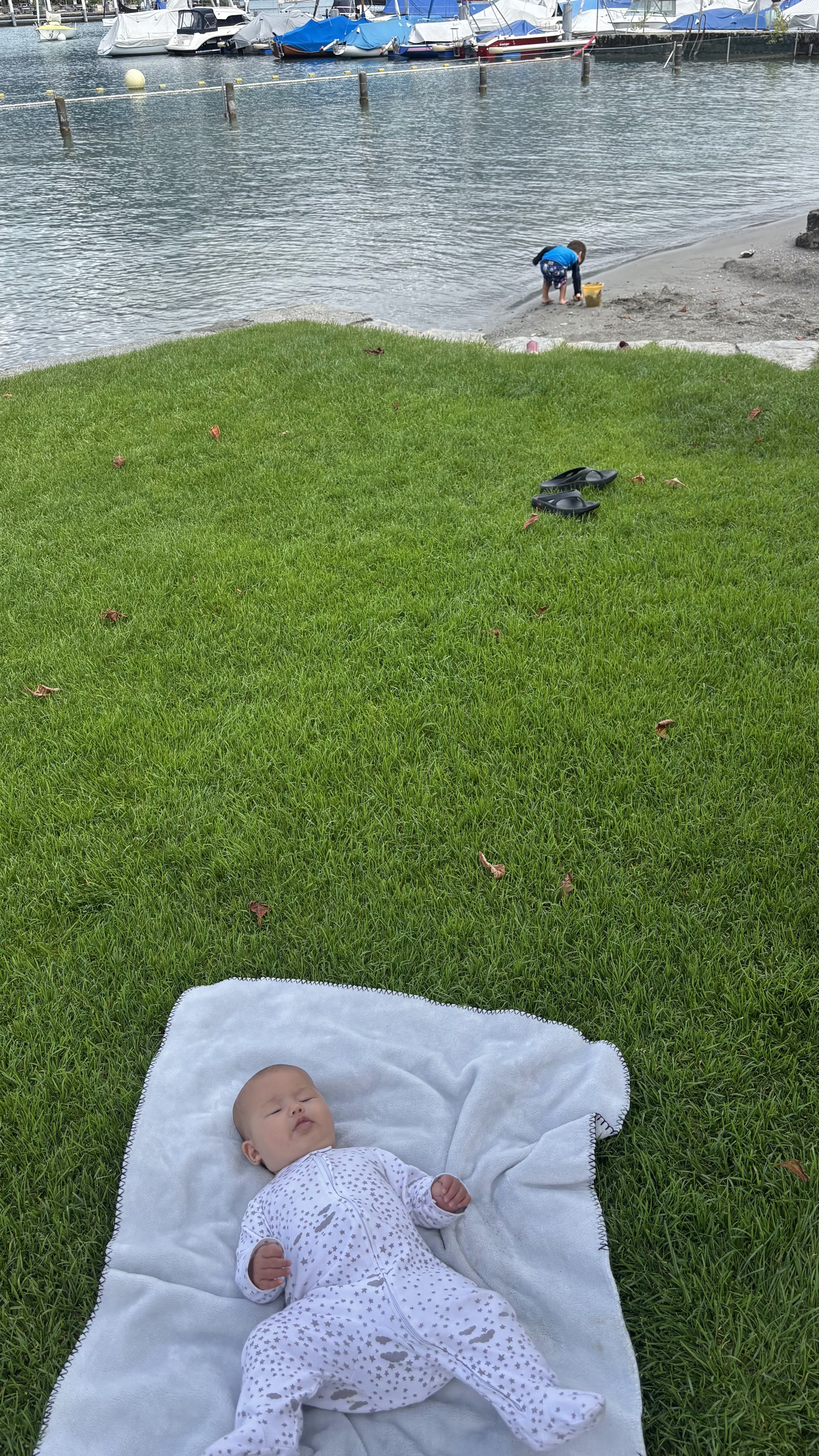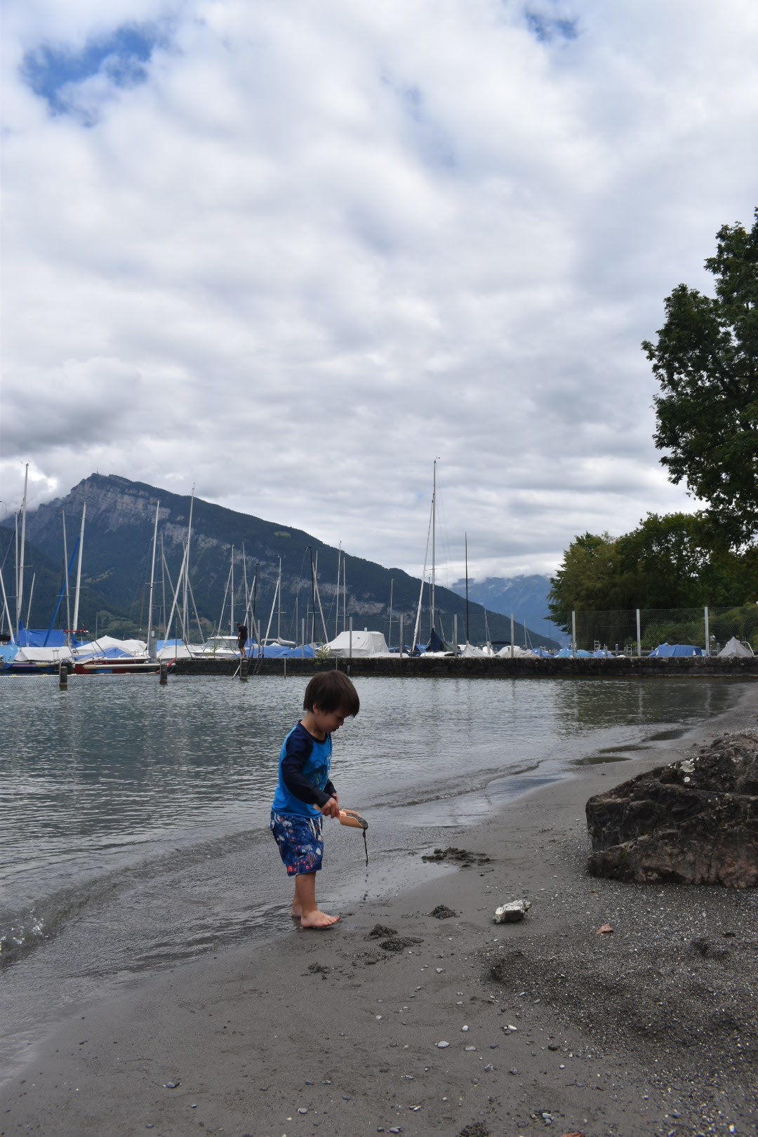 A slightly overcast day, but still great for the lake! The lake is glacial so the water was way too cold for the kids. But the beach area had a giant lawn and a pool, and a sand area with toys, so they had a marvelous time.