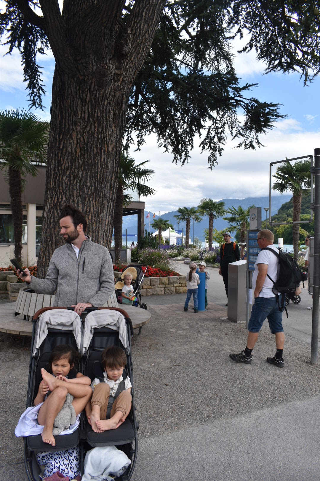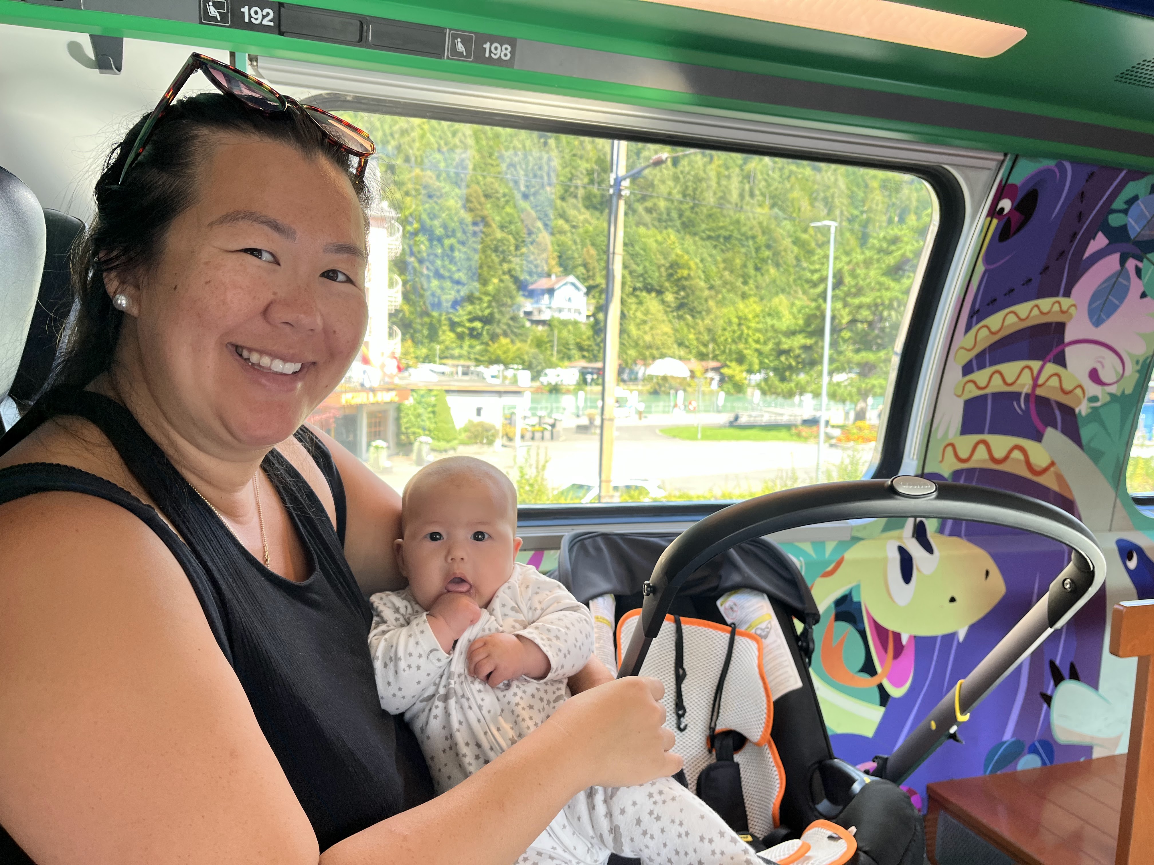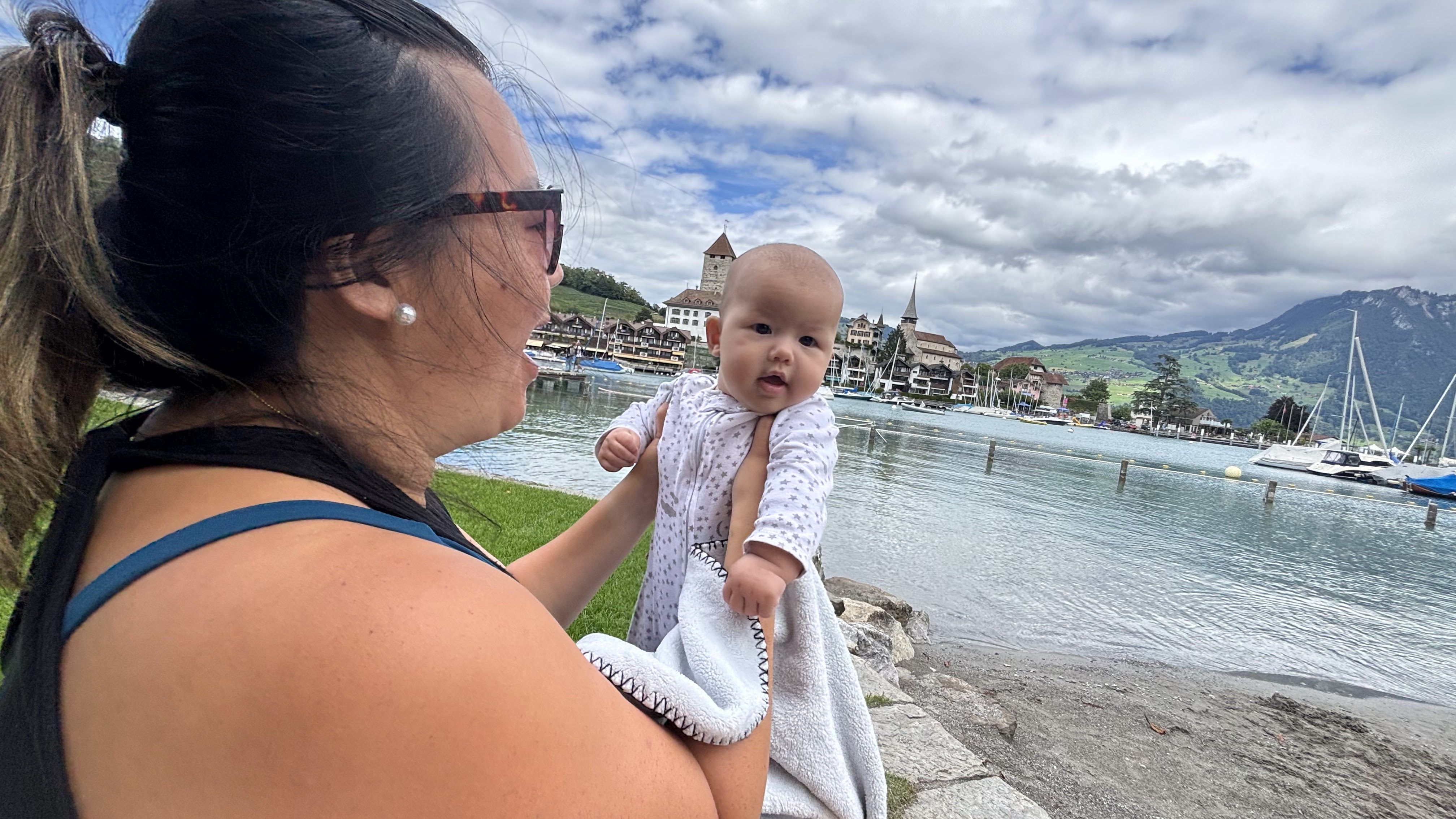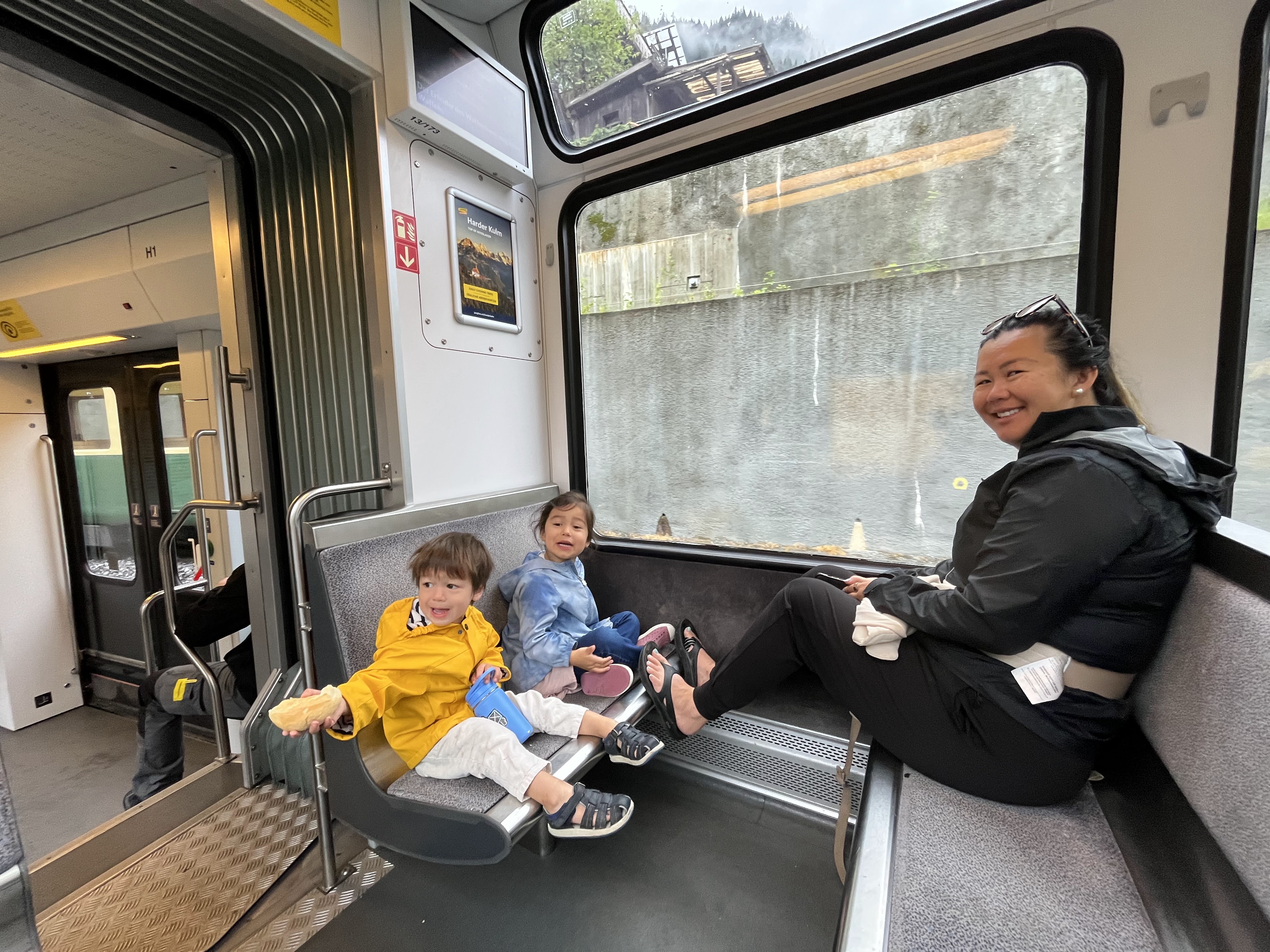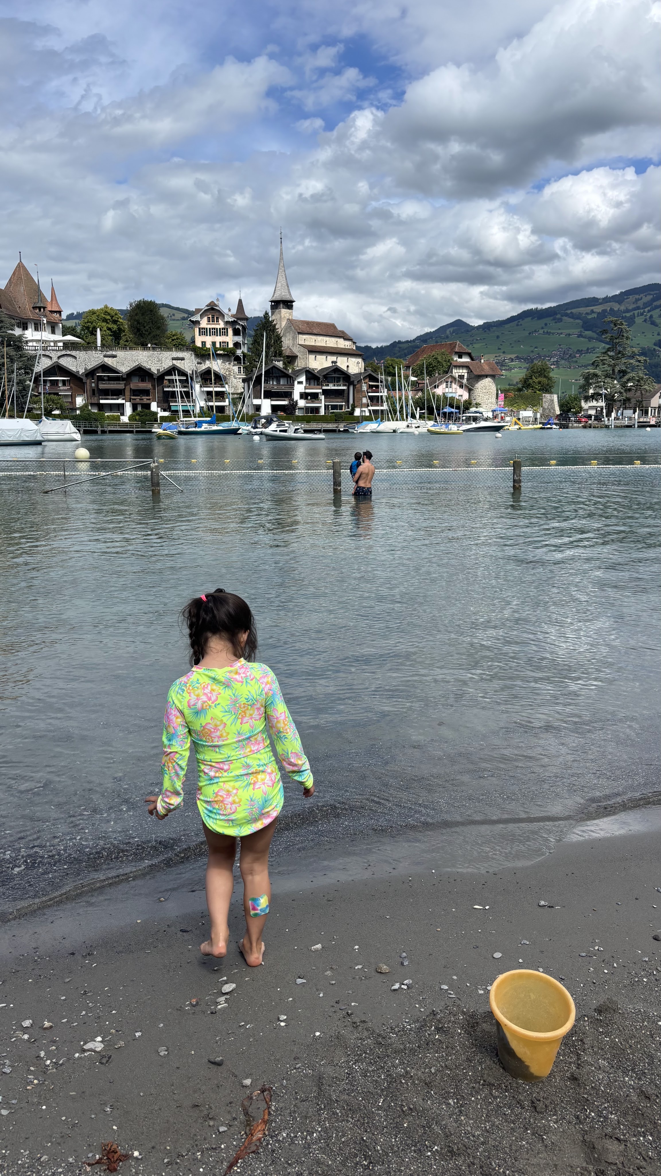Our journey from Lauterbrunnen to Braunwald, where our kinderhotel was, took us through the mountains via the train. It was all the way on the other side of the alps and would’ve taken around 6 hours door to door. We broke the train journey up by spending the day on one of the lake towns (Speiz), which was wonderful! I wish we had more time to do a boat journey or a full beach day at one of the lakes, but it would’ve been to much transit time and too difficult to rent a boat with the 3 kids. So this was a nice taste of lake life. There was also a nice castle that we could’ve visited, but the kids really just enjoyed playing in the sand, beach, and lake. Plus the beach area was down a pretty steep mountain from where the train dropped us off (we just put our luggage into lockers at the train station), and there was a music festival when we visited so the buses weren’t running to drop us back up the mountain.